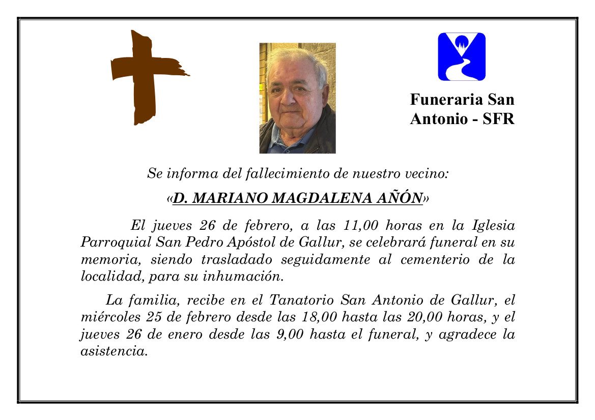 por josemaria.sau@funerariasdetudela.es | Feb 25, 2026 | Esquelas, Tanatorio San Antonio (Gallur)